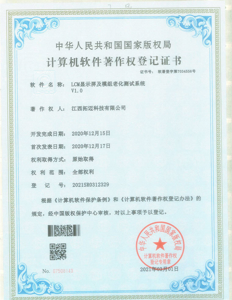 計(jì)算(suàn)機(jī)軟件(jiàn)著作(zuò)權登記證書(shū)