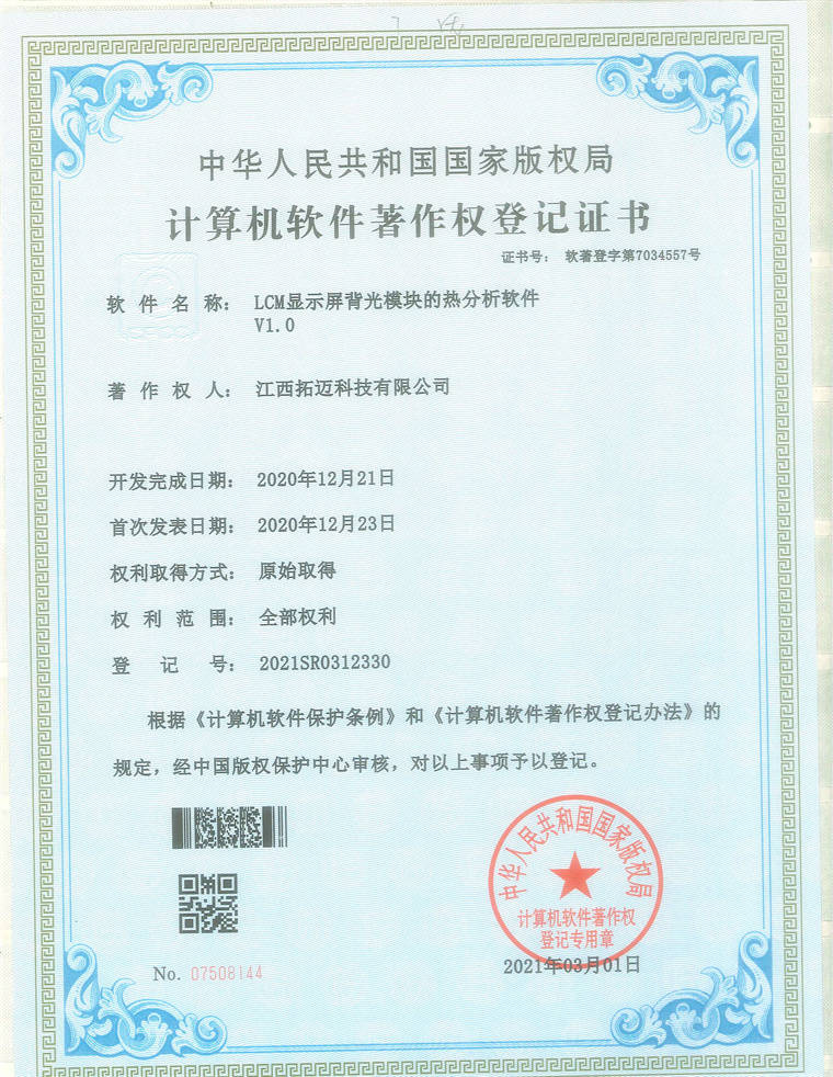 計(jì)算(suàn)機(jī)軟件(jiàn)著作(zuò)權登記證書(shū)